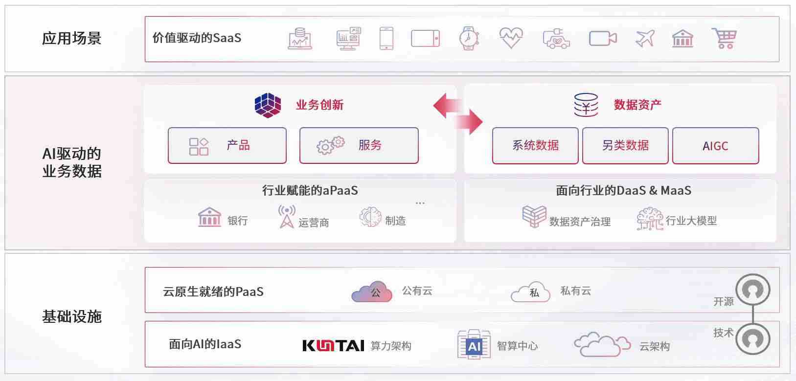 数字时代,,,,围绕企业数字化转型的关键要素,,,,拉斯维加斯游戏数码开创性的提出数云融合战略和技术体系框架,,,着力在云原生、、数字原生、、AI原生和信创产业上架构产品和服务能力,,,为处在不同数字化转型阶段的快消零售、、、、汽车、、、、金融、、、医疗、、、政企、、教育、、运营商等行业客户提供泛在的敏捷IT能力和融合的数据驱动能力,,,,构建跨界融合创新的数字业务场景和新业务模式,,助力企业级客户建立面向未来的核心能力和竞争优势,,,,全面推动社会的数字化、、智能化转型升级。。。